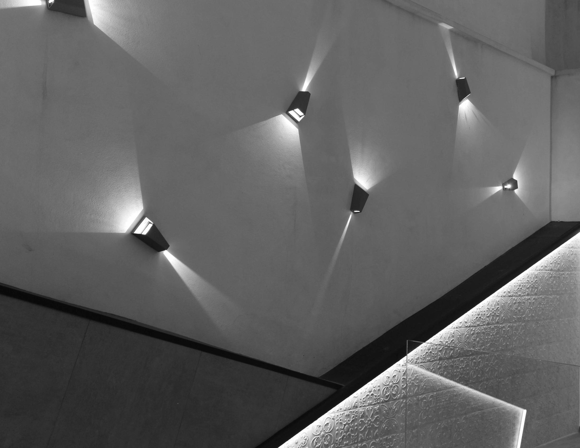 La iluminación es crucial tanto de día como de noche. Con la instalación de lámparas empotradas, focos direccionales y guirnaldas de luces creamos esta atmósfera acogedora y funcional, donde vemos líneas rectas y triángulos dando una sensación de orden y equilibrio.